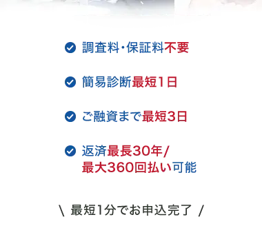 ご融資まで最短3日