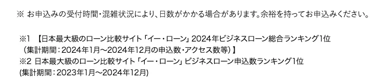 ※1 【日本最大級のローン比較サイト「イー・ローン」 2024年ビジネスローン総合ランキング1位